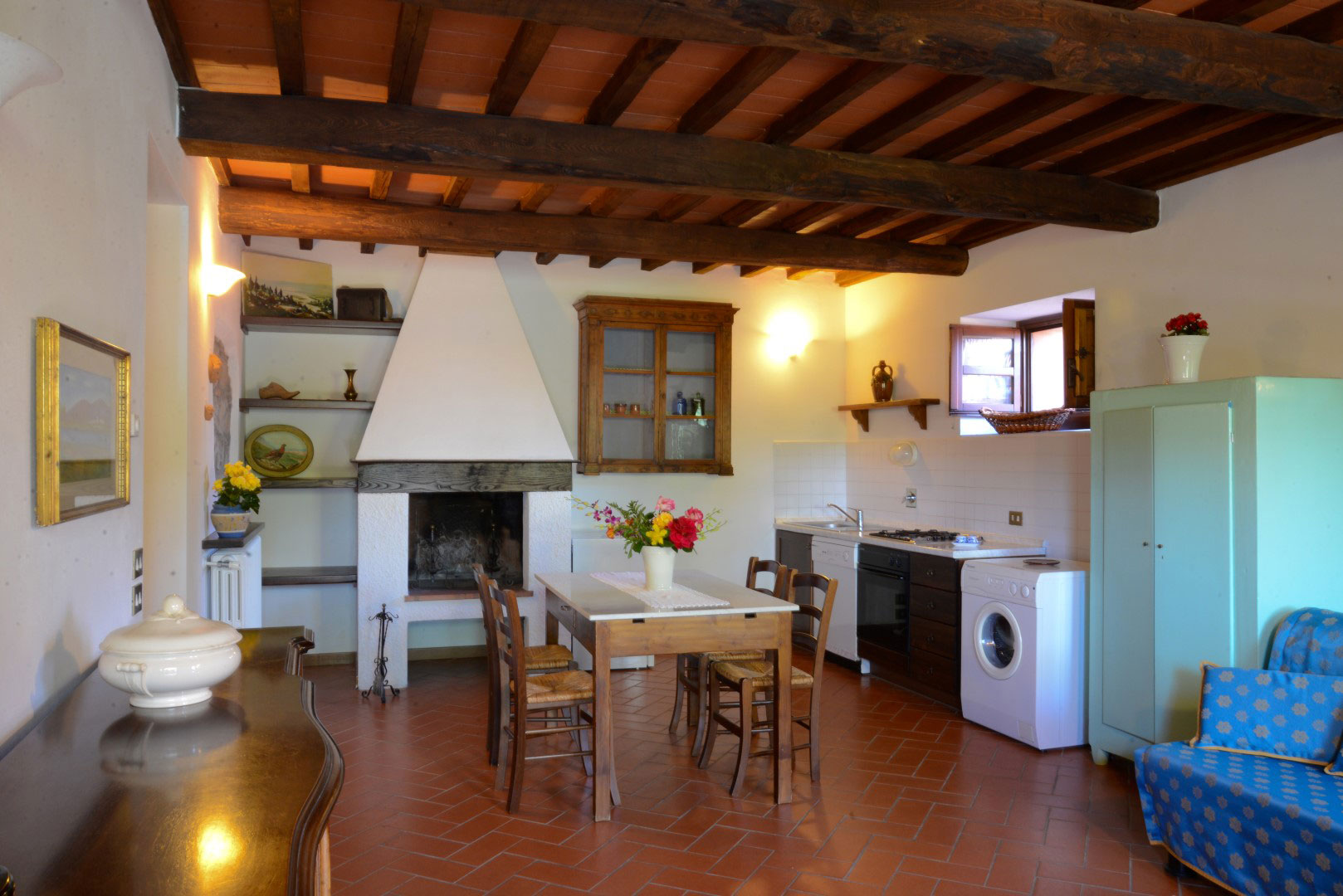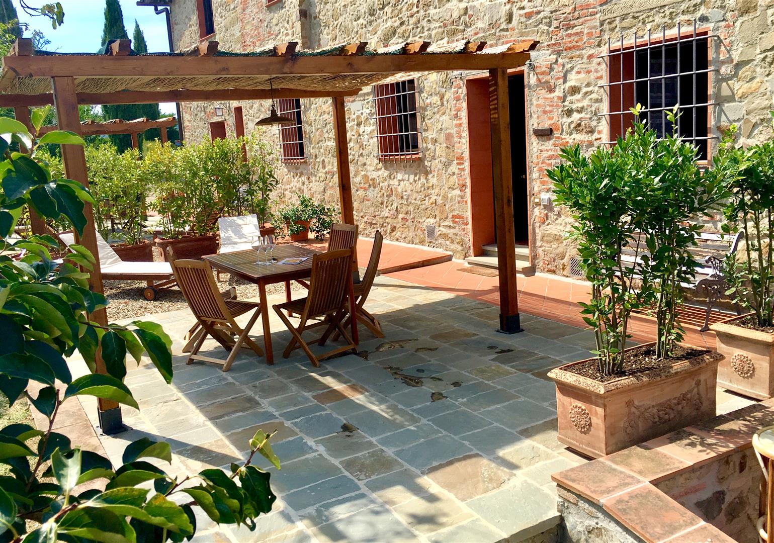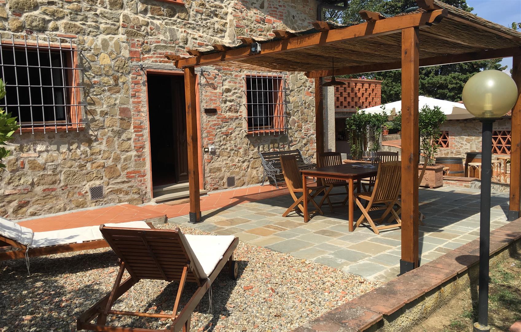 Appartamento al piano terreno del casolare principale, con accesso indipendente e giardino privato alberato. La cura nel restauro e nell'arredamento rendono la casa particolarmente accogliente e confortevole, nel pieno rispetto del classico stile rurale toscano.