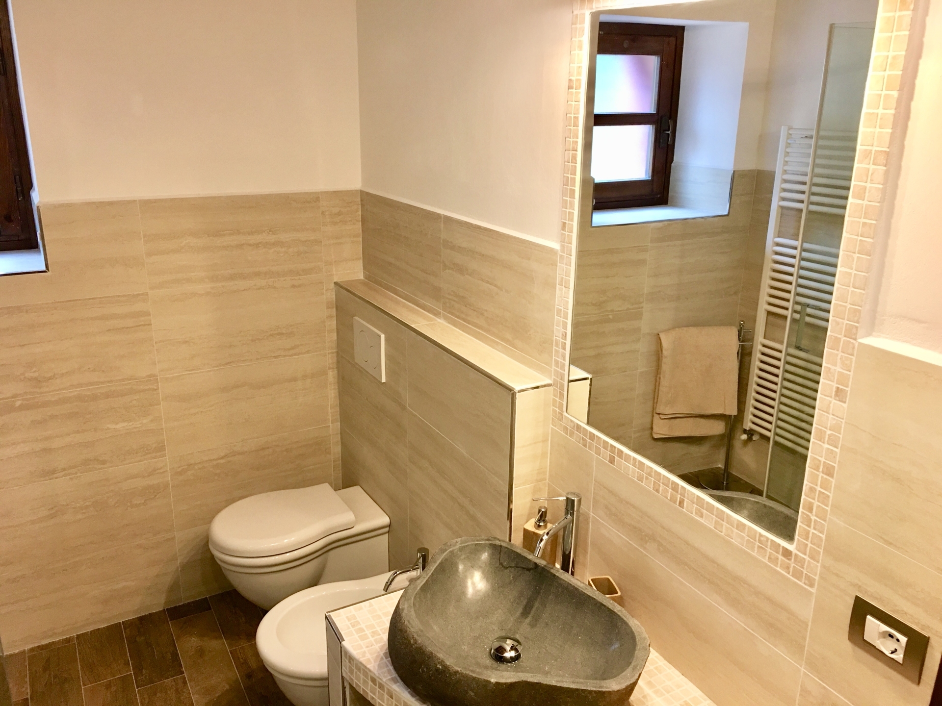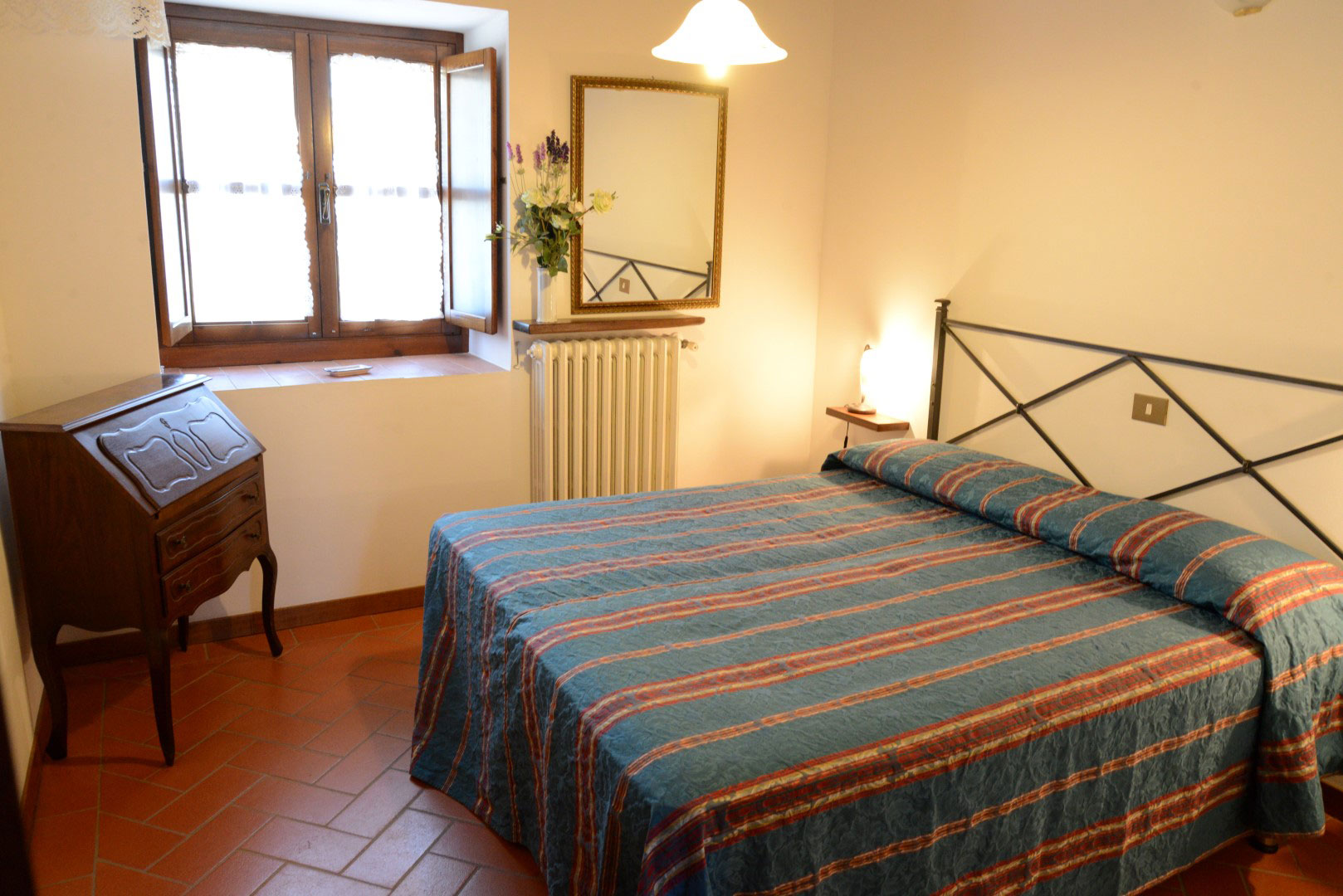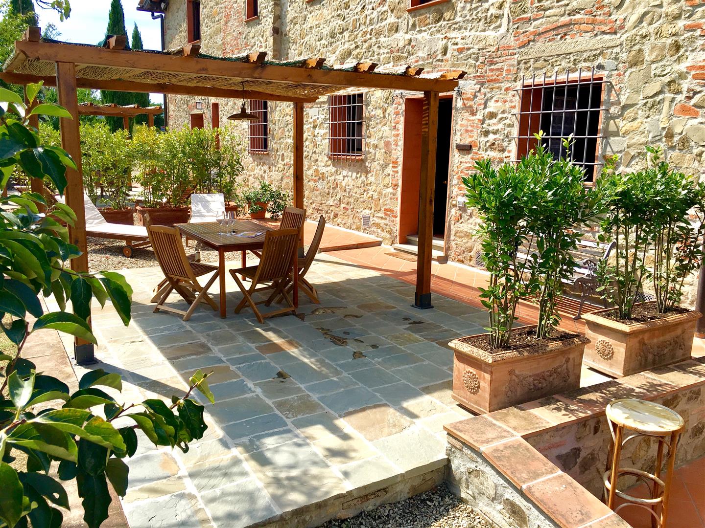 Appartamento al piano terreno del casolare principale, con accesso indipendente e giardino privato alberato. La cura nel restauro e nell'arredamento rendono la casa particolarmente accogliente e confortevole, nel pieno rispetto del classico stile rurale toscano.