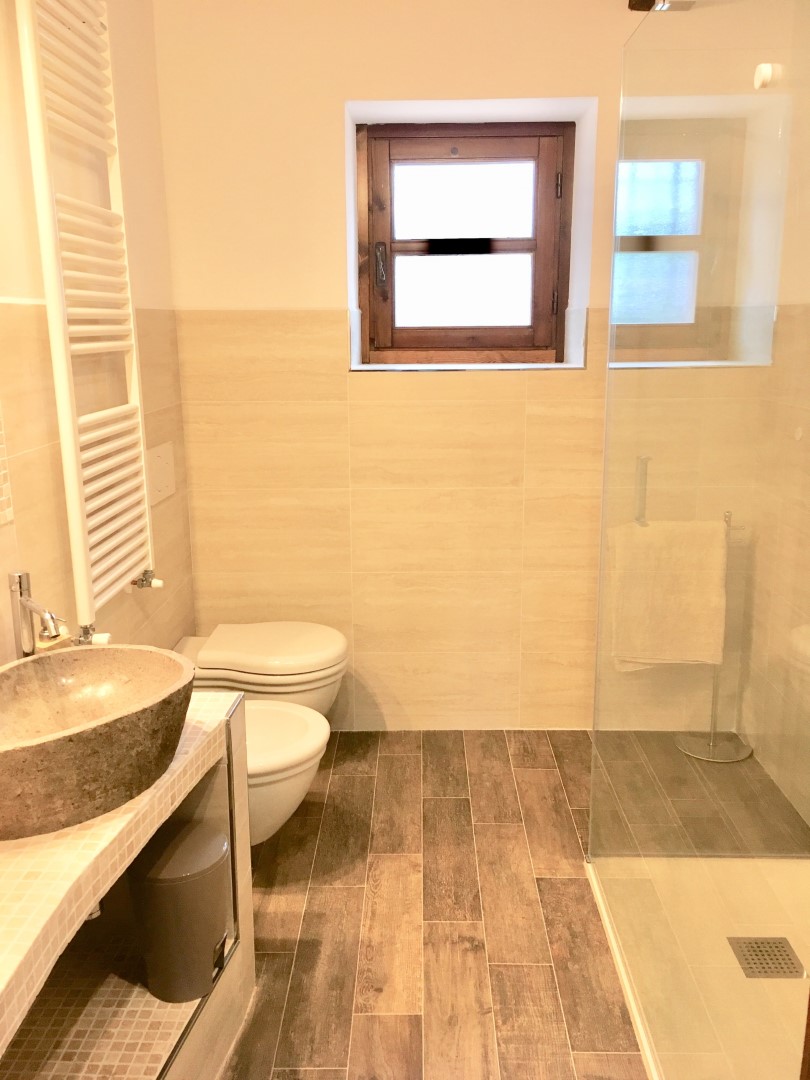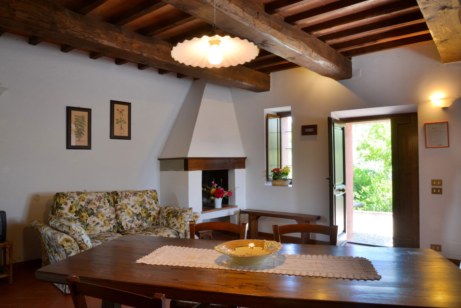 Appartamento al piano terreno del casolare principale, con accesso indipendente e giardino privato alberato. La cura nel restauro e nell'arredamento rendono la casa particolarmente accogliente e confortevole, nel pieno rispetto del classico stile rurale toscano
